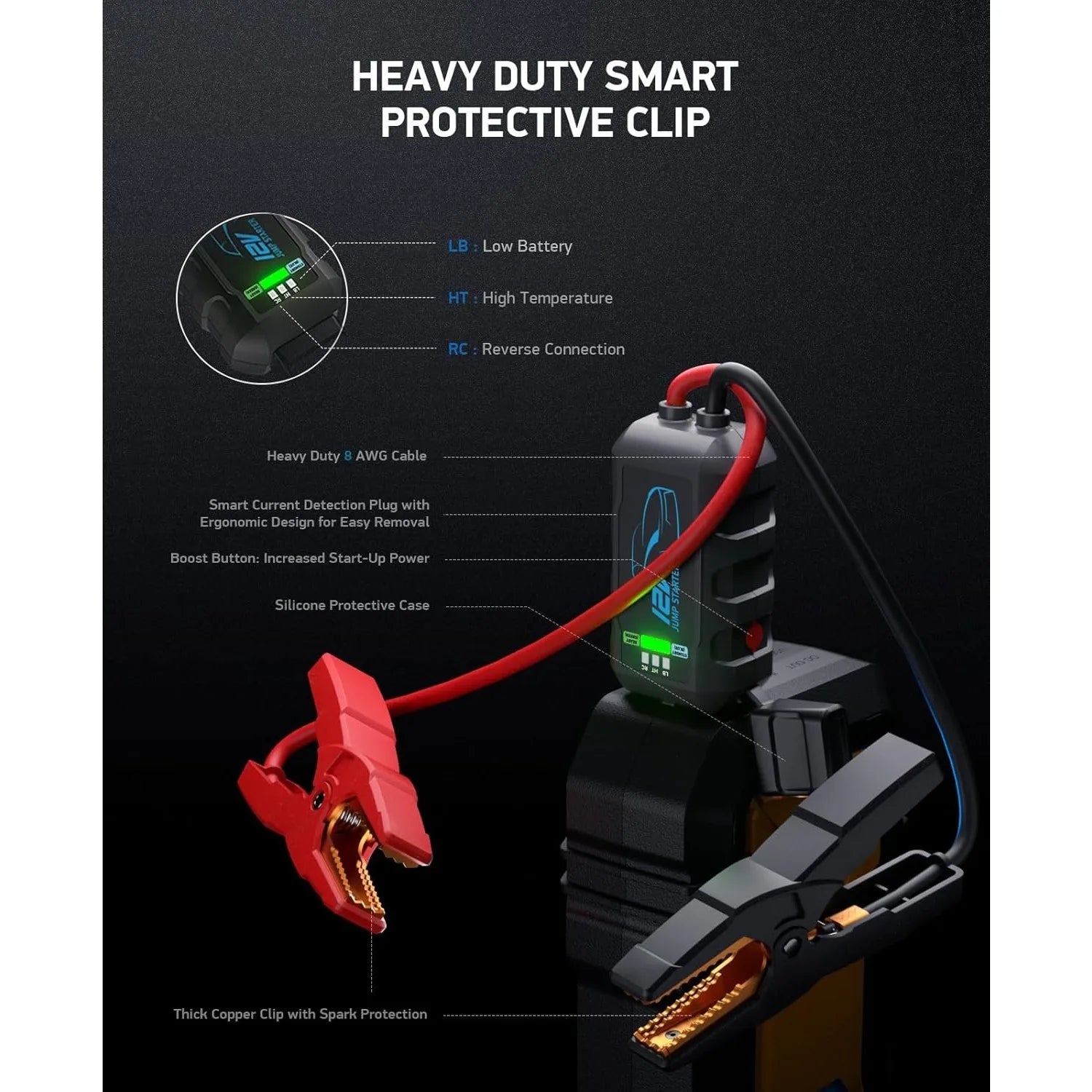 Smart Clamp, Super Convenient & Ultra-Safe Car Jump Starter